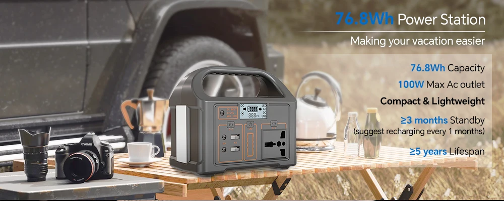 100W Portable Power Station 76.8Wh Lifepo4 Solar Generator 110V 220V Power Station Solar Power Bank for Outdoor Camping