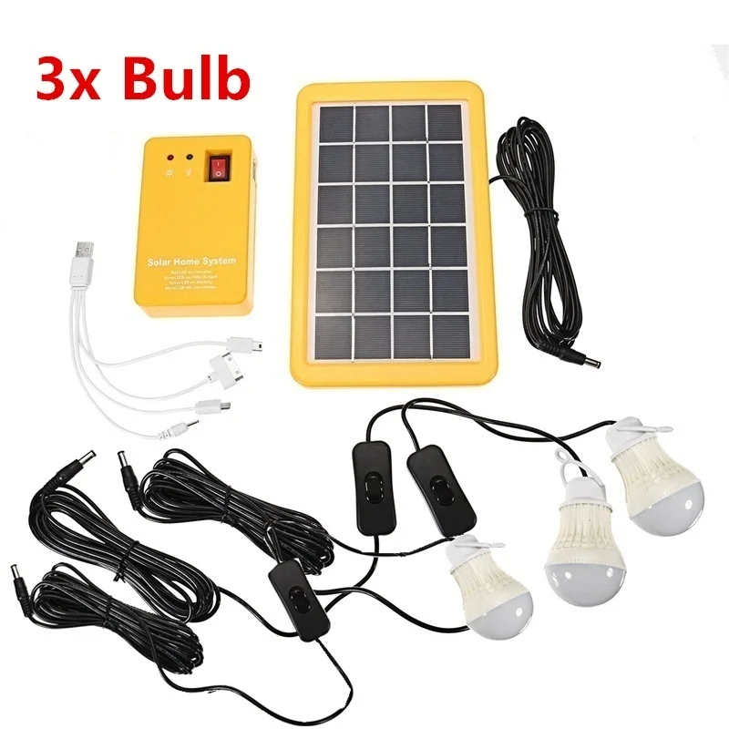3/2Bulbs Solar Panel Camping Outdoor Lighting Kit Home DC System 4 in 1 as Emergency and Mobile Phone Charger for Garden Night
