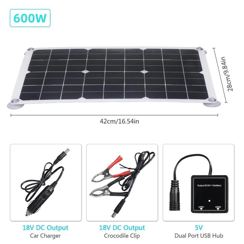 600W Solar Panel Kit 15V USB With 100A Controller Solar Cell Car Yacht RV Mobile Phone Battery Charger Outdoor Power Supply