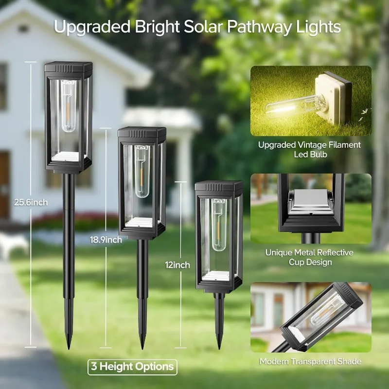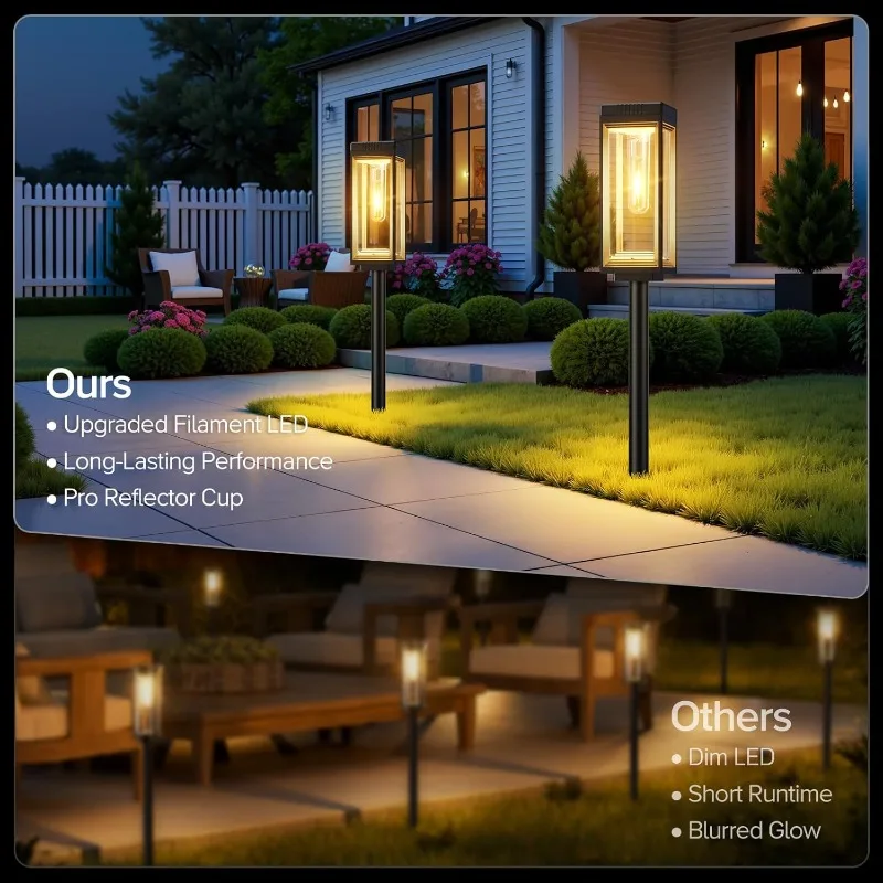 Bright solar lights outdoors: The solar trail lights are equipped with unique professional reflective cups, significantly improving light utilization efficiency by 40%, reducing light scattering and waste, and enhancing overall lighting effects.